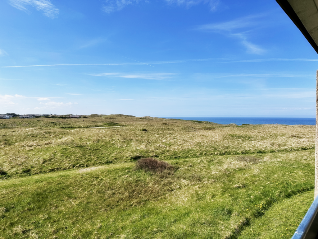 Vores ferie lejlighed der placeret på 1. sal med syd vendt terrasse hvorfra der er udsigt til havet,